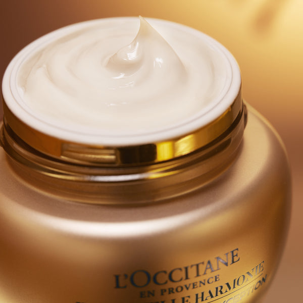 Immortelle Harmonie cream has been upgraded for an even higher anti-aging efficacy for skin that lifts up, bursting with life. It acts on 9 signs of aging for a lifting effect (NEW), redefined contours (NEW), smoothed wrinkles, smoothed texture, firmness, density, tone evenness, radiance, and improved elasticity.