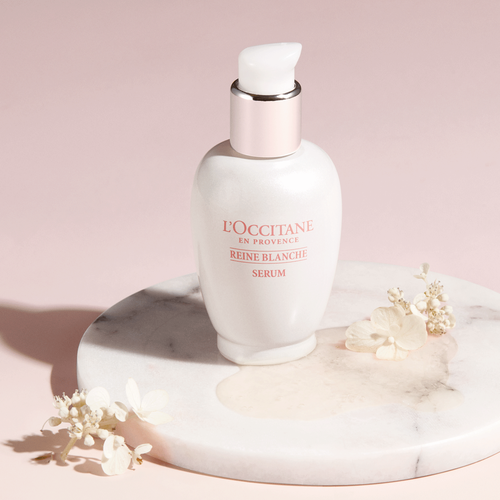 Reine des Prés is a pure white flower known for its brightening properties. It naturally contains salicylic acid - renowned for boosting luminosity and helping epidermal renewal. Inspired by its immaculate beauty and unparalleled luminosity, L’OCCITANE has created the Reine Blanche illuminating programme for bright and even skin.