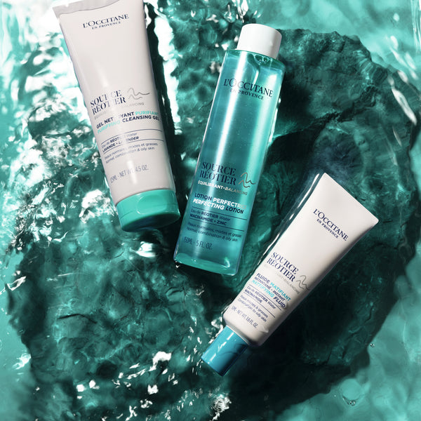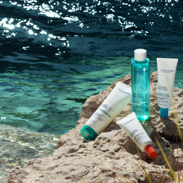 Discover our thirst-quenching, water-based Source Réotier Collection, uniquely formulated with 3 powerful ingredients: hyaluronic acid, glycerin, and calcium-rich Réotier spring water derived from the mountains of Provence.